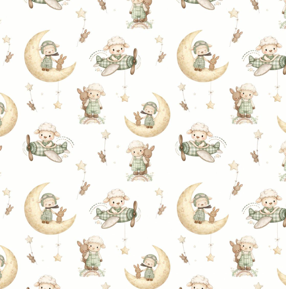 Tecido 100% Algodão | Padrão Infantil | Ovelha na lua